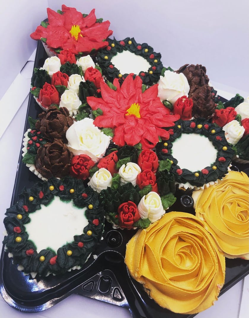 - 12 Handcrafted Christmas Floral Cupcakes